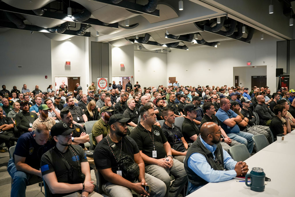 Florida public safety officers view the latest drone-related technology at FLOCON 2025 at SunTrax in Auburndale, FL.